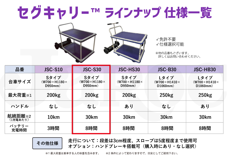 セグキャリー™ Sタイプ/ハンドルなし/30kmモデル JSC-S30